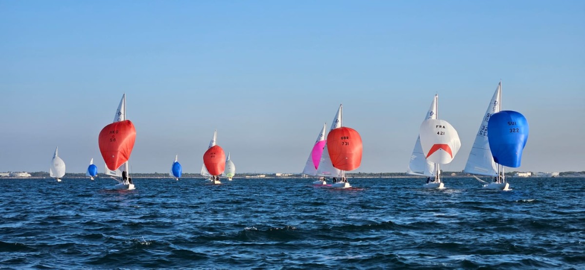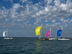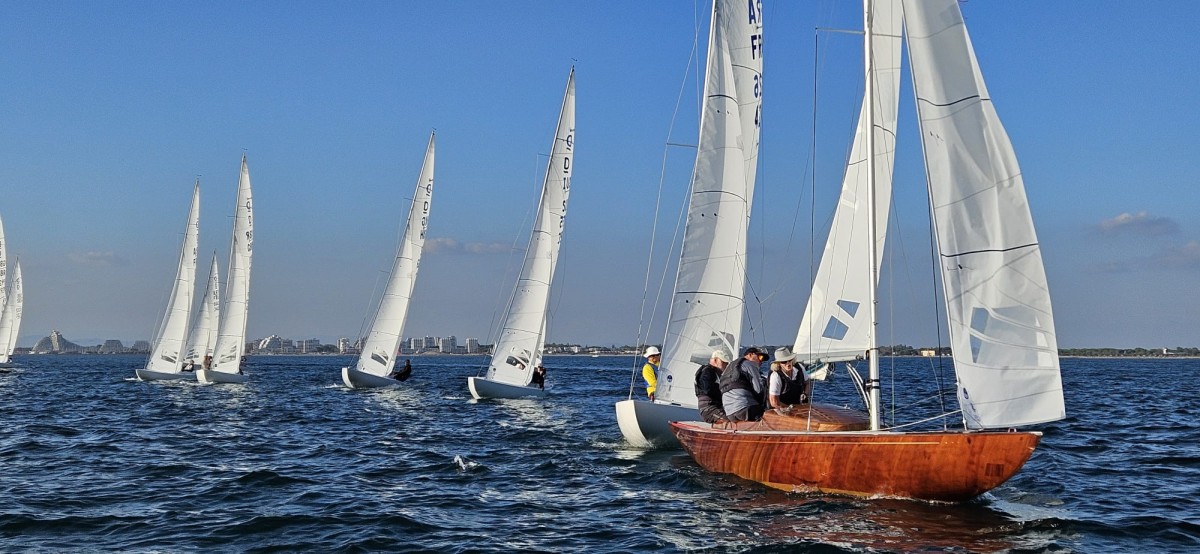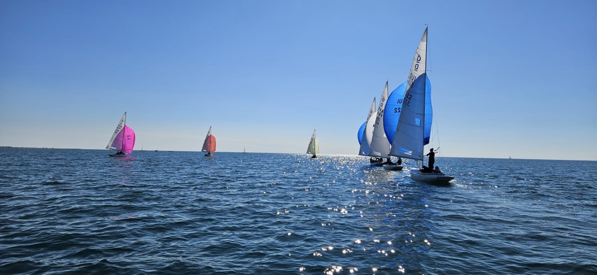 Les conditions météorologiques de la semaine ont été très anticycloniques avec des renforcements thermiques l’après-midi. Les courses ont été pour cette raison commencé tôt le matin avec une interruption en milieu de journée et un retour sur l’eau en fin de journée. Bravo à notre comité de course d’avoir pris les bonnes décisions d’horaires.