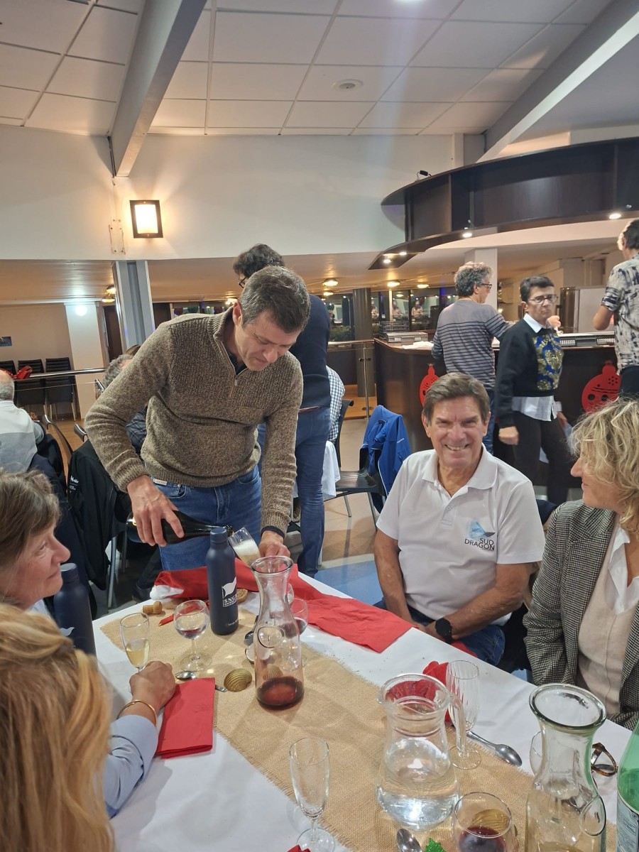Des plateaux de fruits de mer bien garnis et toujours autant appréciés des convives ont précédés plats et desserts de saison, arrosés de quelques bulles offertes par l’équipage de VEGA, vainqueur du Trophée SNGRPC 2025 qui leur a été remis pendant le repas.