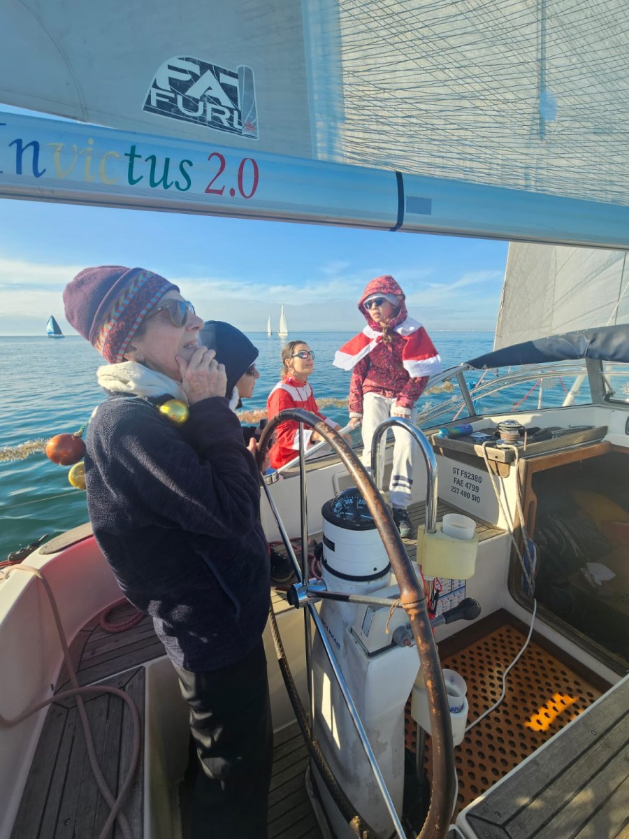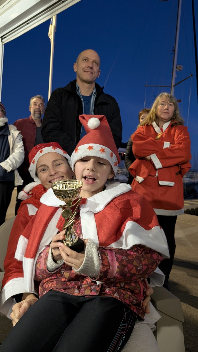 Dans le groupe 1, Intox 3° brule la priorité à Habanera au temps compensé, profitant d’une erreur d’angle de descente de celui-ci et d’une bonification aux décorations de Noël. Princesse Doudou 2nd n’aura pas résisté à Nhao : ce dernier plus rapide sous spi mais plus lent au près, aura doublé 3 fois la Princesse avant de terminer victorieux.