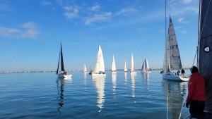 Avec un vent d’environ 5nds au départ, mollissant à 3nds après une demi-heure de course, il fallait absolument rester sur son erre et garder du vent apparent pour ne pas s’encalaminer.