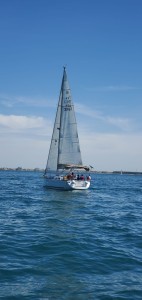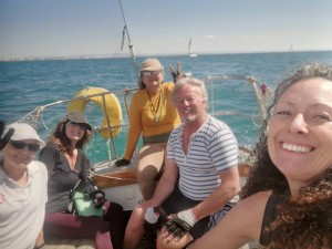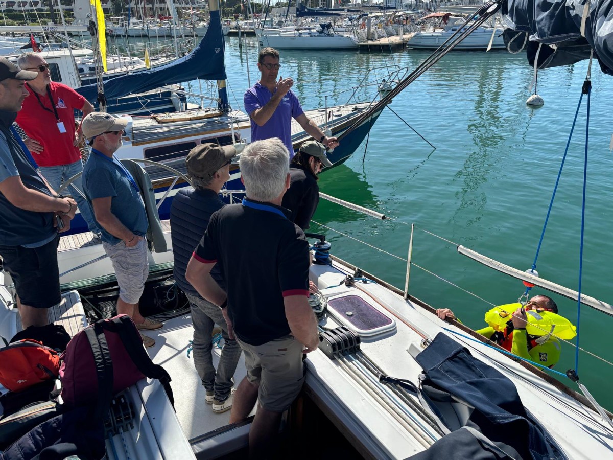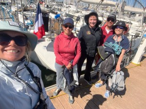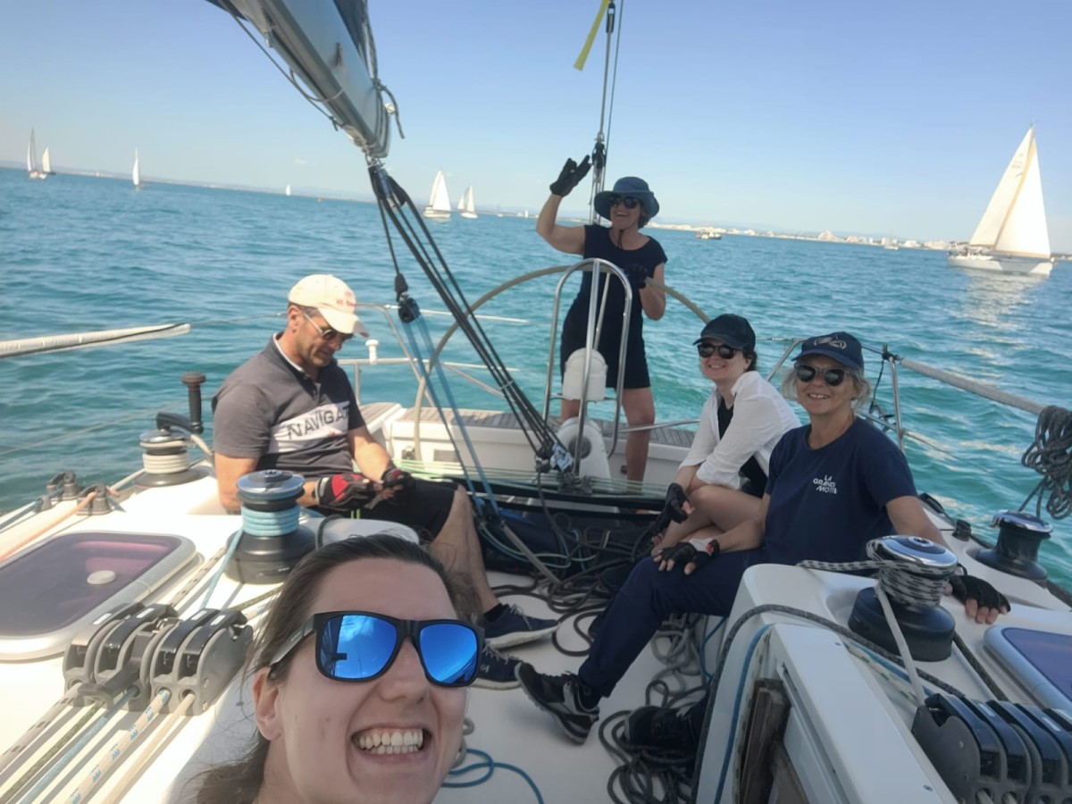 Les participantes de tout niveaux, allant de celles n’ayant presque jamais mis les pieds sur un voilier, à celles ayant déjà une expérience régate, et de tout âge (de 17 à 75 ans !), ont ainsi pu profiter d’une très belle journée sur l’eau avec un programme à la fois centré sur le fonctionnement du voilier avec leurs skippers, mais aussi centré sur les lignes de départs. Marie-Paule Kieffer, aidée de Michel Chadelas, nous ont ainsi mouillé une ligne de départ avec deux bouées, qui nous ont permis de travailler 3 départs à blancs, suivis de 3 départs avec passage d’une bouée au vent.