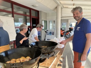 Ensuite c’est le traditionnel apéro planteur qui a réchauffé les participants de la soirée avant le repas d’équipage de Corto Pilès et du Kwak. Olivier Falque en véritable chef, avec l’aide de nombreux bénévoles (merci Laurie !) ayant régaté l’après-midi pour le Championnat 30/16, ont préparé un excellent repas pour les 60 convives présent ce soir.